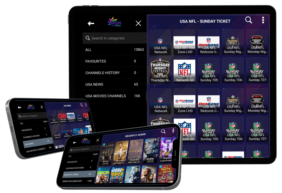IRONTV, c’est le nec plus ultra pour les chaînes de sport et de cinéma du monde entier. Action, thriller, comédies, drames, science-fiction, et bien d’autres genres vous attendent sur IRONTV PRO !